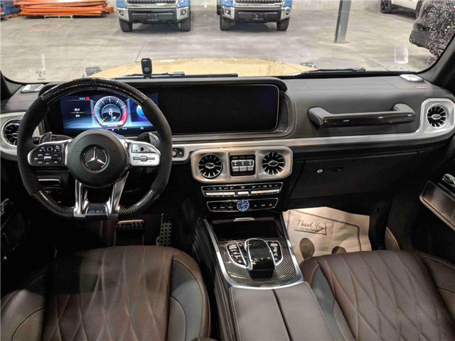 2019款奔驰G63极具有诱惑力。方向盘采用了AMG平底式全新造型的运动方向盘搭配银色碳纤维设计彰显时尚。中控台采用大量银色金属亮条搭配与中央手扶箱融为一体,虚拟的仪表盘与中控12.3英寸液晶屏融为一体颇具时尚气息,中控涡扇式空调出风口也颇具设计感,车内的高档皮革内饰以及标有V12钻石图案设计的座椅、车门面板和脚垫,无不彰显着车主的尊贵身份。外观设计:粗犷中增添了几分精致全新奔驰G级仍然保持专业越野车的定位,同时采用了传统的“方盒子”造型设计,但是细节部分变得更加细腻。新车型尺寸有了明显的提升,长宽高分别为4817×1969×2187mm,轴距为2890mm。