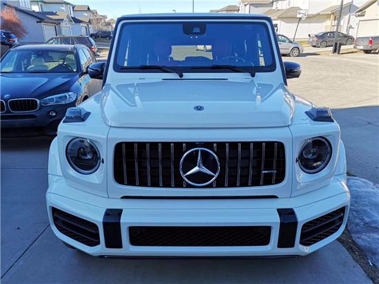 2019款奔驰G63AMG它就像一个铁箱子,没有多余的弧度、没有任何曲线,眼光所及满是平直锋利的线条,就连车顶上的导雨沟槽,也是沿着车顶周围一圈,分外焊接上去的金属槽,车门搭钮更是绝不虚心,硬挺挺地屹立在门缝之外,外凸的轮拱、造型如同梯形的引擎盖。