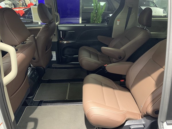 丰田塞纳增加了DVD、倒车影像、导航、氙气大灯和不锈钢镀铬装饰。硬朗的腰线又让这部商务车充满了力量感。AWD标识证明了这是一款四驱MPV。它将MPV的用途发挥到顶峰的同时,为了扩大空间把原先中置的发动机向前移,加上下压的底盘,形成一个超大内部空间,使驾乘人员的舒适性和载物最大化。顶配带有吸顶DVD后排娱乐。
