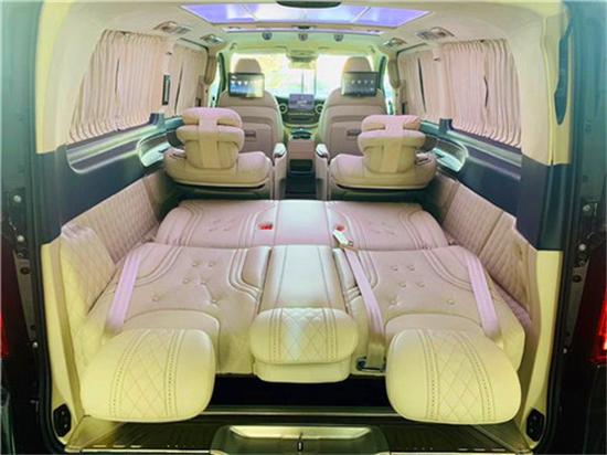奔驰迈巴赫VS680后舱是一个舒适之地,两张航空座椅规格之高超越迈巴赫,选用进口小牛皮包裹触感细腻,缝线精致,更拥有超长腿托,多向调节、电动按摩、座椅加热通风等功能。座椅双侧有电动电脑桌,车内WiFi随时可在车内办公。