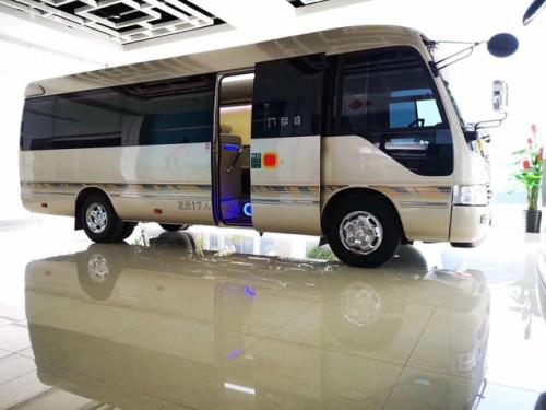 19款丰田考斯特是一款由丰田汽车公司所出产的中型商务接待中巴车,考斯特设有多个版本,有高级车(20、23座位)、豪华车(10-20座位)以及特别行政版(20座),丰田考斯特往往身份的象征,最大特点是空间宽敞、做工精致、配置齐全,而且可以多人同行。