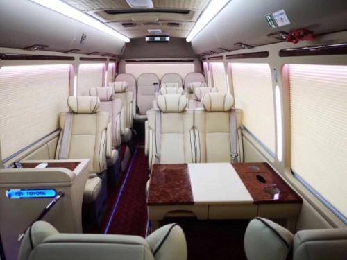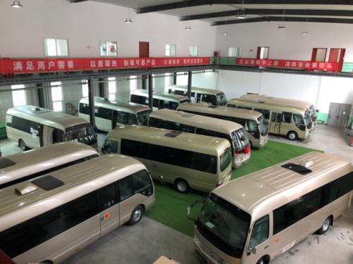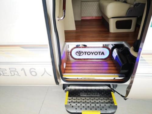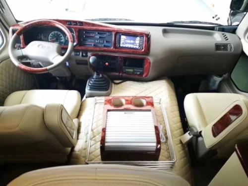 19款丰田考斯特座椅方面一般都比较简单弄一个布艺座套打上公司标志就可以了,丰田考斯特商务接待版,一般是指的丰田考斯特16座、17座、15座、14座的车子,这一类的接待车子相对来说就比较讲究一些了,这类丰田考斯特改装的宗旨是豪华但不失大气,一般是政府机关,企事业单位的最爱。