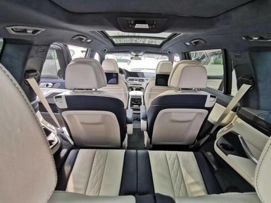 宝马X7将会提供6座和7座两个版本,座椅布局分别为2+2+2、2+3+2,其中6座布局第二排座椅可选装类似头等舱的豪华座椅。此外,新车还搭载了三段式天窗,其中第三排上方为独立式设计。后备厢门开启方式与X5相同,为上下分段式开启。