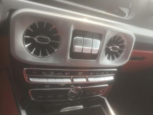 19款奔驰G63 AMG精选皮革搭配多疤。大多数奔驰的电子系统都出现在这个全新的豪华内厢里,包括COMAND和HD卫星导航系统。中控台多处均采用碳纤维材料覆盖,带彩色TFT显示屏的AMG。