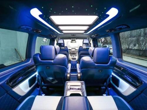 奔驰V260可加装桃木件,电视,吧台设计,航空座椅,九宫格的设计也很别致,加了氛围灯,又增加了几分浪漫的色彩,高端游艇木地板设计,既环保,又好打理,整体档次提升了很多无论是开会还是全家出游,做上去都很舒服。