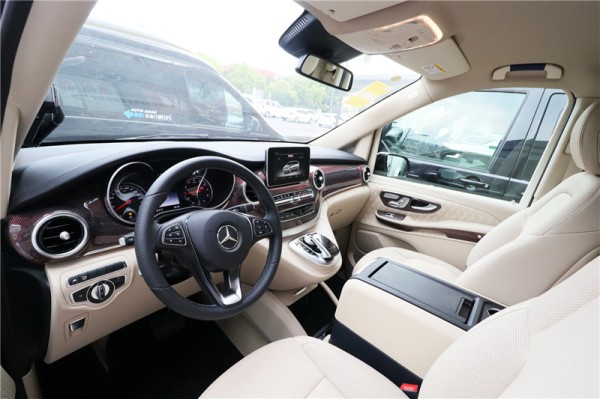 奔驰V级新款V260L的驾驶舱风格要简洁鲜明得多,驾驶室座椅是两个豪华电动座椅,可电动4四向调节,头枕可调整高度。驾驶室带有豪华一体式中央扶手箱,折叠式冰箱盖,带扶手功能,内置储物冰箱,制冷加热杯托,后部储物盒,USB接口,后部电源接口220V。