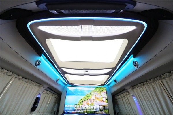 从车门到座椅、灯光、车窗以及隐私窗布闭合,都完成了电控一键操作,全车铺设的游艇级柚木地板也是具有了奔驰V级新款V260L商务车定制的超豪华舒适。当然这辆奔驰V级车怎么能少的了全景的天窗呢,在阳光明媚的日子,打开天窗还可以让他人和自己一起享受一番。