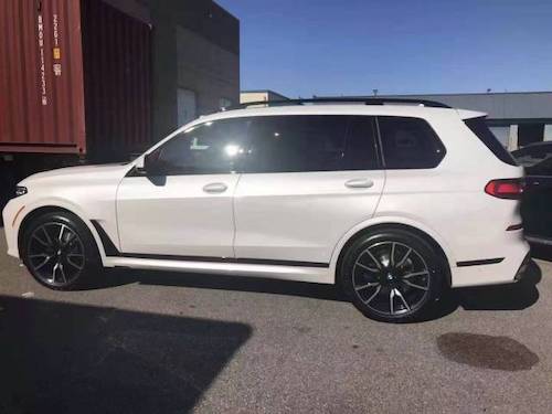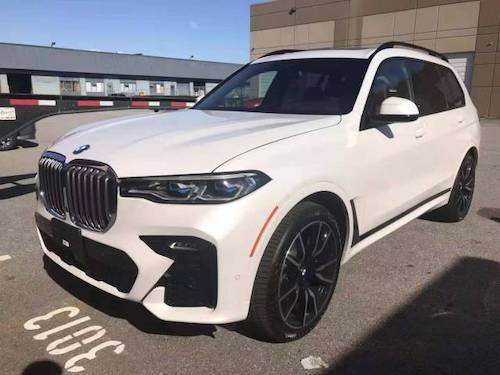 外观设计,宝马X7外观设计非常越野硬派,整体高大威猛,前脸依然沿用了家族双肾设计造型,进气格珊与两侧狭长的激光灯搭配在一起,显得格外尊贵,也非常大气,从侧面看,侧面腰线从前轮一直贯穿到车尾,门把手采用了非常时尚的隐藏式设计,从尾部看去,尾部四出排气管让该车看起来运动感很强。19款宝马X7亮相,长5米多6座超宽敞,比路虎奔驰都豪气。