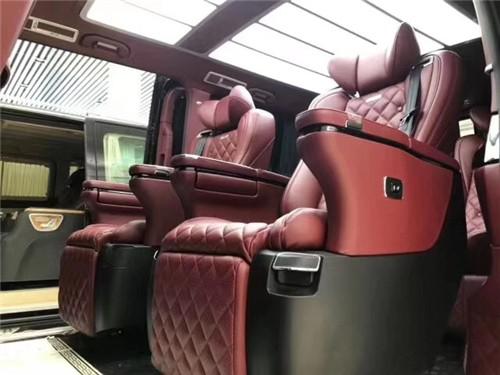进口V250改装奔驰迈巴赫VS680在座椅的遴选上更是一丝不苟,全新进口航空头等舱座椅,甄选最顶级的头层小牛皮包覆,手工缝线打孔工艺更是精细无比,菱形的走线纹路纹路让人在一瞬间以为是迈巴赫S级 (配置|询价)轿车附体,迈巴赫VS680商务车座椅自带的通风加热,电动按摩更是不必再详细赘述,加大尺寸的座椅头枕更是能够让乘客在旅途中尽享豪华舒适。十二向的座椅调节功能简直可以让出乘客在车内“为所欲为”
