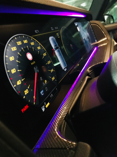越是经典的设计越难做出改动,或许就是因为G级太过经典,以至于新车外观最明显的两处改动总是给我感觉怪怪的,其中一个是大灯,圆形头灯让我又爱又恨,爱的是它的几何多光束LED大灯能在弱光条件下,实现更好的照明效果,恨的是环状的LED日间行车灯让它看起来有些呆萌,跟自身的硬汉形象不搭。