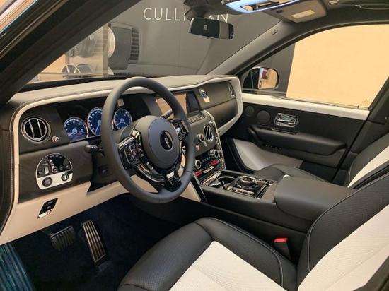 19款劳斯莱斯库里南的内饰遵循了劳斯莱斯一贯的设计风格,造型经典复古但不失科技感,大量实木饰板的采用,提升了内饰的档次感。而大面积真皮包裹的设计,则成功的营造出奢华舒适的内饰氛围。仪表盘的设计较为古朴,内部指针清晰可见,外圈还配备有劳斯莱斯珠宝般的装饰环。方向盘沿用了经典的三辐式造型,但是整体设计更加小巧、厚实,并且内部包裹有可加热的柔软材质。