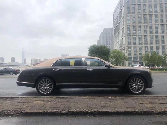 2017款宾利幕尚加长 车架号:2511 颜色::玫瑰金混磁铁灰 / 米色配海豚灰 状态::森扬现车手续齐 配置:天窗、穆勒包、前后座椅通风按摩、后娱乐、高级音响、小桌板、宝石油箱盖、车库遥控器、两把雨伞、泊车钥匙、四座、前后地毯、冰箱、GPS、数字电视、后座可折叠办公桌。