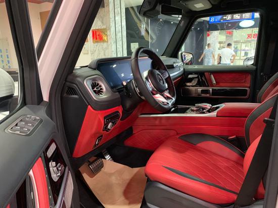 全新G63内饰方面,新G63保留了新G500的整体设计,除配色差异外,新车还换装了全新造型的平底式AMG运动方向盘,其两侧配以打孔皮质包裹,下部镀铬装饰的造型也与新G 500明显不同,看上去十分战斗。此外,全液晶仪表盘+中控大屏的双12.3英寸屏幕设计在新车上也没有缺席,营造出了浓郁的科技感,