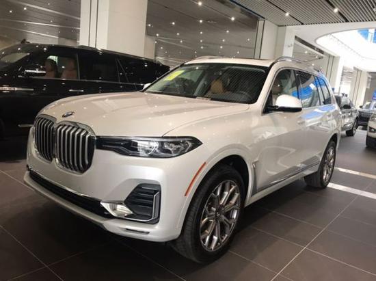 外观设计,宝马X7外观设计非常越野硬派,整体高大威猛,前脸依然沿用了家族双肾设计造型,进气格珊与两侧狭长的激光灯搭配在一起,显得格外尊贵,也非常大气,从侧面看,侧面腰线从前轮一直贯穿到车尾,门把手采用了非常时尚的隐藏式设计,从尾部看去,尾部四出排气管让该车看起来运动感很强。19款宝马X7亮相,长5米多6座超宽敞,比路虎奔驰都豪气。