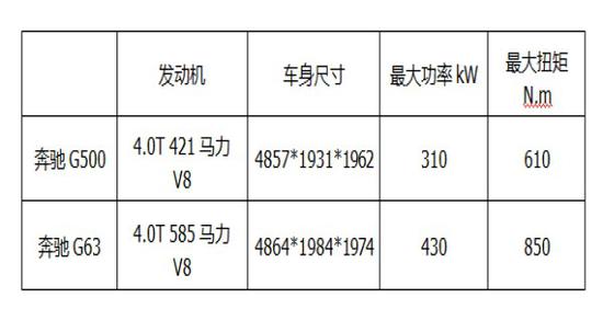 下图为奔驰G500 和奔驰G63 AMG参数对比!