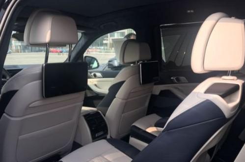 2019款宝马X7配备三段式星空全景天窗,前排座椅背部提供两块娱乐系统显示屏,后排独立空调下方还集成了储物格、双USB Type-C充电接口、12V电源以及娱乐设备,同时B柱也配有空调出风口。六座版车型第二排为两个独立座椅且带有电动调节功能(7座车型第二排还支持前后14.5cm的滑动调节),上方配备两个头枕,内侧配有座椅扶手,大幅提升了乘坐舒适性。 第三排为两个常规座椅,支持一键便捷进入,提供照明灯、杯架等常用配置。后备箱方面,宝马X7配置同样齐全,除包括基础的照明灯、电源、锚点以及挂钩外,还配有后两排座椅的一键放倒、打开功能,大幅提升了使用便捷性。