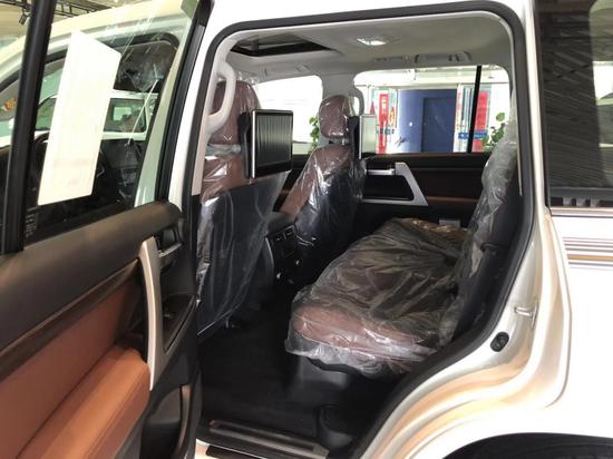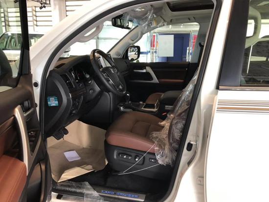 19款丰田酷路泽5700配置:底盘升降,原装导航大屏带倒影,多地形模式,蠕行模式,转弯辅助,VSC,胎压报警,自动感应头灯,自动远光,天窗,桃木内饰,真皮桃木多功能方向盘,冰箱,定速巡航,20寸铝合金轮,中差,遥启,真皮座椅,主副驾驶电动座椅,JBL音响,电动方向盘调节,后排娱乐,后尾翼手机无线充电,近远光氙灯,大灯清洗,智能电动折叠外后视镜,新款运动前后包围(与普通版不同)。