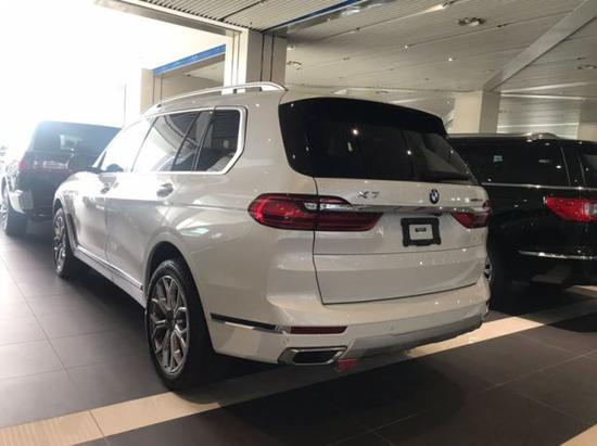 外观设计,宝马X7外观设计非常越野硬派,整体高大威猛,前脸依然沿用了家族双肾设计造型,进气格珊与两侧狭长的激光灯搭配在一起,显得格外尊贵,也非常大气,从侧面看,侧面腰线从前轮一直贯穿到车尾,门把手采用了非常时尚的隐藏式设计,从尾部看去,尾部四出排气管让该车看起来运动感很强。19款宝马X7亮相,长5米多6座超宽敞,比路虎奔驰都豪气。