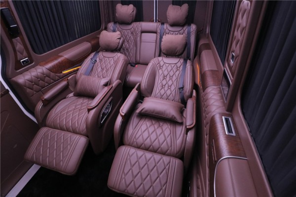 奔驰斯宾特7座房车豪华的奔驰S级 (配置|询价)头等舱座椅,8项电动调节,可通风加热,坐上去就能调试到最舒适的乘坐姿势。奔驰斯宾特7座房车还配有对坐式设计复古豪华座椅,液晶中控,可操控车内电器和灯光。