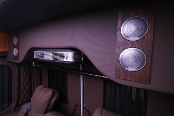 这款奔驰斯宾特7座房车后舱是一个大型豪华的全隔断设计,豪华后舱内,有吧台、可升降大尺寸电视、柏林之声音响、航空座椅、车顶灯饰、净化器、晾衣杆等奢华配置,商务休闲于一体,随时随地转换模式。奔驰斯宾特7座房车拥有12只柏林之声扬声系统,搭配大尺寸的升降隔断电视,在车内就可以看电影追剧。