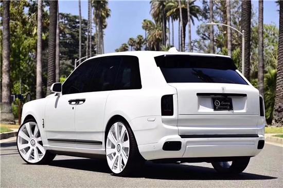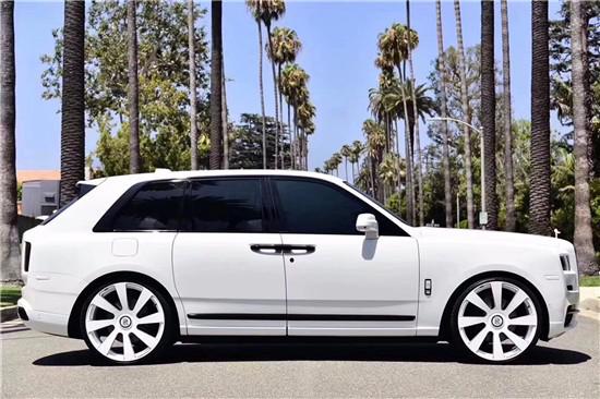 19款劳斯莱斯库里南整体采用直线条设计,同时延续了巨大的侧窗以及高车顶造型,银色车窗装饰条设计进一步凸显新车的豪华气质,据悉新车的整体尺寸为长宽高5341/2164/1835mm,轴距3295mm,整体远大于宾利添越与路虎揽胜长轴距版。