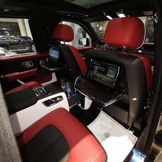 库里南的内饰延续了全新幻影 (配置|询价)的设计风格,整体用料依旧一如既往的奢华高贵,中控采用大面积实木打造,配合方向盘上的实木点缀,既复古又豪华。中控屏幕尺寸为10.2英寸的屏幕,轻触车门把手上按键就可以电动关闭,四座版的后排控制台与前部是断开的,在狭窄环境停车后排乘客可以选择任意一侧下车。
