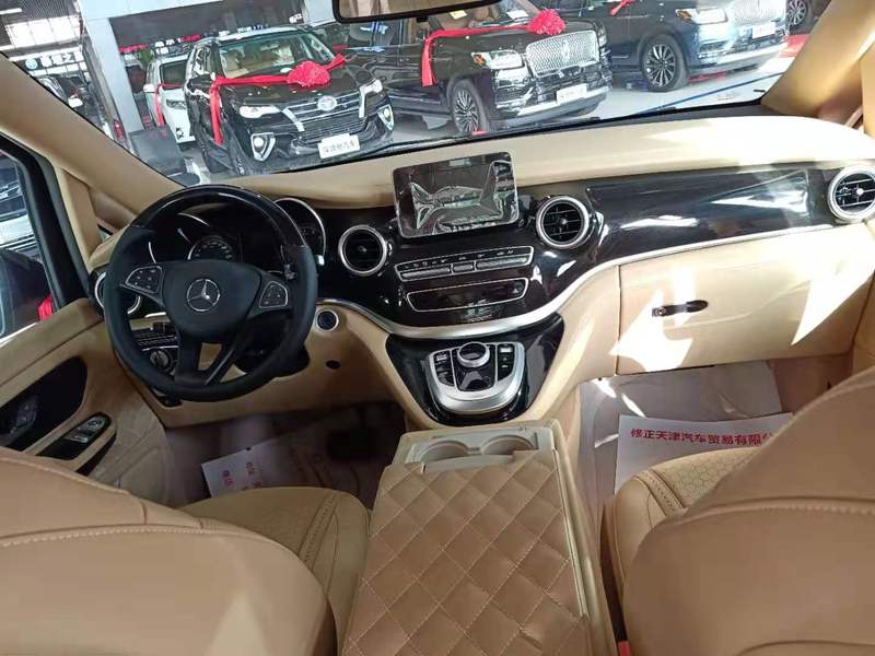 今天给大家介绍一下奔驰V250标准加长配置,[标配]:17寸铝合金轮毂 大屏导航带手写版 LED大灯 双侧电动门 真皮座椅 电动尾门,前后电眼 雨感 多功能真皮方向盘 换挡拨片 顶部高级智能控制区 电动折叠后视镜 自动启停 氛围灯 主副驾,有腰部支撑 私密玻璃 行李架 动底盘可选择性减震 坡起辅助 侧风辅助 并道辅助 盲点辅助与碰撞预警。以下图片就是原厂的标准配置内饰比较简单,需要后期修饰。