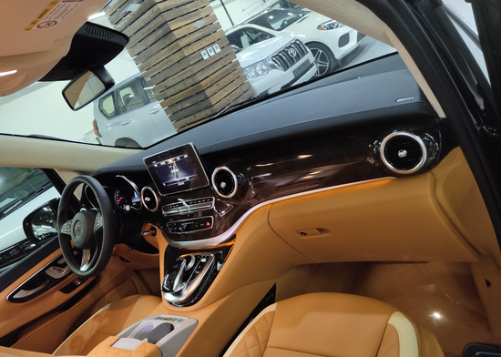 19款奔驰商务车V260L在设计的档次感方面比之前威亚诺有了非常大的进步,外观也许给人感觉变化并不是特别大,那么内饰则完全不一样了,最近的奔驰家族风格我们已经很熟悉了,而用在一款VPL上还是让车内一下子变得高大上了很多。而且像一些细节之处的设计也向着轿车看起,比如仪表盘、方向盘和多媒体系统等,这也让它逐渐脱离之前很像是一款商用车的印象。