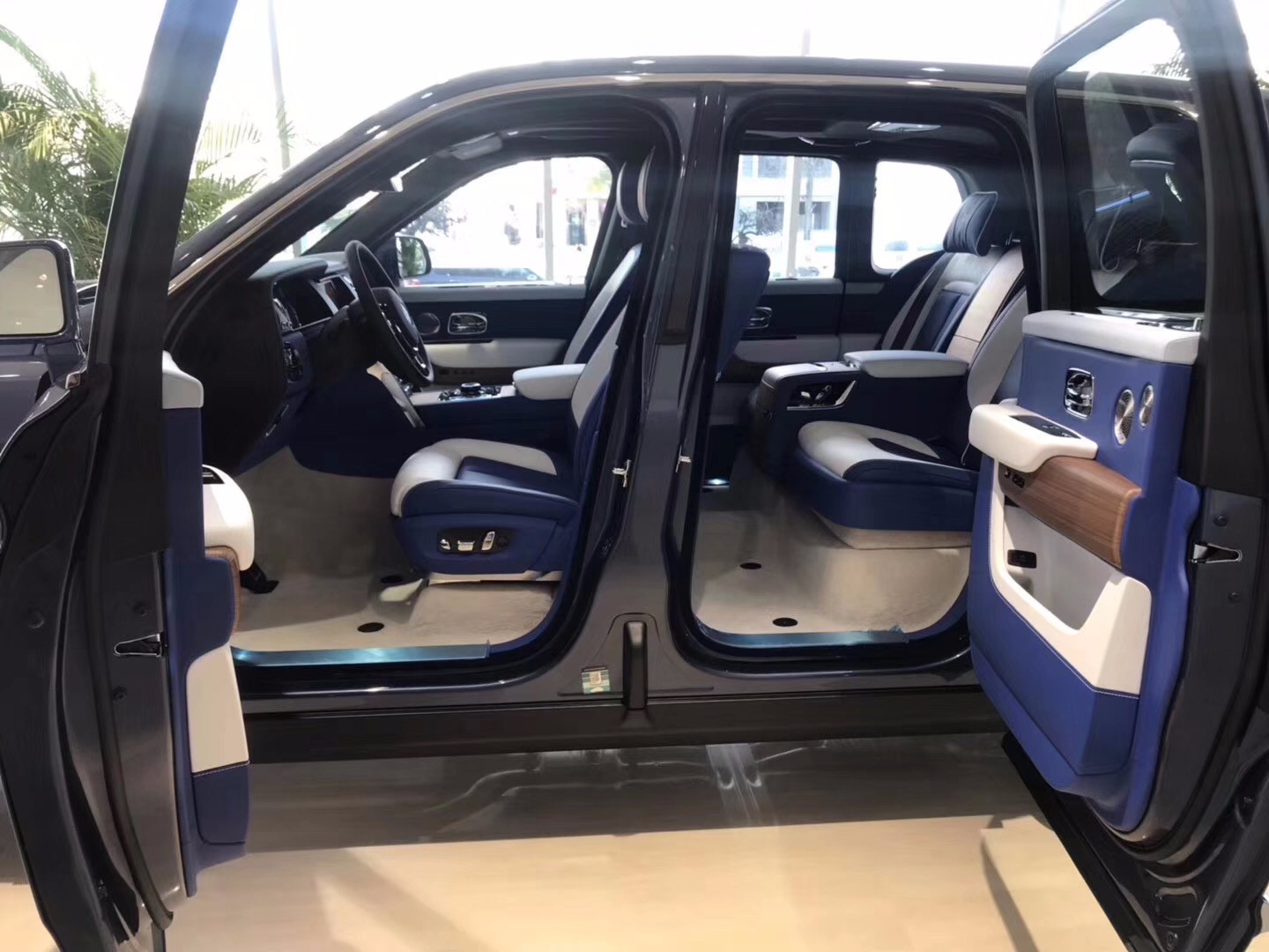 经典的马车式对开门彰显奢华的仪式感,开门时车身会自动下降40mm,方便乘客上下车,启动后车身则会自动升高。