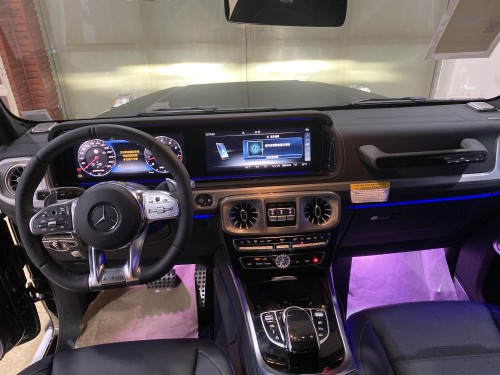 2019款奔驰G63与前代车型相比,标配新式仪表盘和最先进的COMAND APS NTG 4.5驾驶室管理和数据系统。还配备了带彩色TFT显示屏的AMG表盘、AMG主菜单和单独的挡位显示器以及采用白色照明的AMG门槛。全新进口奔驰G63AMG采用了全黑的内饰配色,间中点缀的银色镀铬装饰显得相当精致。奔驰G63AMG精选皮革搭配多疤胡桃木木饰的装饰风格彰显了顶级经典越野车的风采。奔驰G63AMG进口SUV豪车内饰设计更具时代感也更加豪华。新款G63AMG独立的液晶显示屏如同奔驰A等新车型一样,被立在中控台上方,这样更加方便阅读信息。大多数奔驰的电子系统都出现在这个全新的豪华内厢里,包括COMAND和HD卫星导航系统