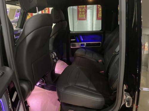 2019款奔驰G63拥有宽敞充裕的车内空间和多种座椅布局方案,能够充分满足您对空间自由度的要求。中控台多处均采用碳纤维材料覆盖,带彩色TFT显示屏的AMG仪表盘、AMG主菜单和单独的挡位显示器以及采用白色照明的AMG门槛。名贵的选材及精湛的内装令人拍案叫绝
