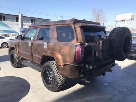 乔治巴顿整车给人的感觉除了粗犷,还是粗犷,裸露的铆钉和垂直的边角线条,要的就是这种霸气范,前部车灯造型可以用古典来形容,简单的造型甚至会让人误有上世纪八十年单车型的错觉。至于车厂为何起名乔治·巴顿我们不得而知,不过通过这辆车我们能看出,车厂将巴顿将军最爱的两样东西——坦克和越野车很好的结合在了一起,让人有一种坦克般碾压一切的气势。