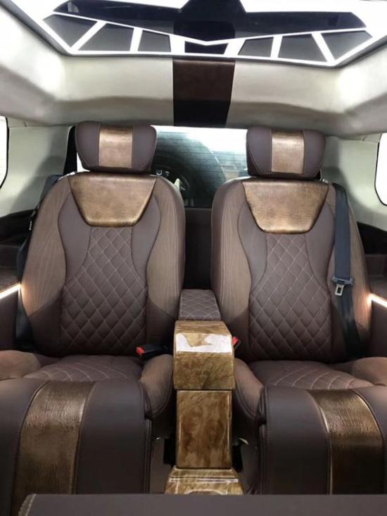 乔治巴顿战车后排航空座椅电动多向调节,加热按摩功能,车顶探照灯,高级鹿皮及乔治巴顿标志全舱柚木地板,吧台3D式设计、白色光带及氛围灯,座椅中央扶手,马鞍式设计带击沉触摸控制系统,可开启式天窗。