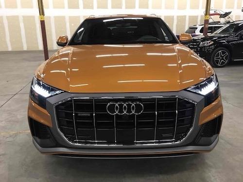 奥迪Q8 (配置|询价)采用大众的MLBEvo平台,这个平台下还有一款“车界流量支柱”车型就是兰博基尼Urus (配置|询价)。从奥迪Q8就能看出未来奥迪新的造车理念,作为轿跑SUV融入了Coupe流线型时尚外观,溜背的造型没有那么夸张过度较为平和。另外,满足用户的个性化需求,奥迪Q8一共提供了12种颜色,包括橘色、蓝色、钪灰色的个性版本,并且还有S-line运动套装版以及哑光灰色的版本。