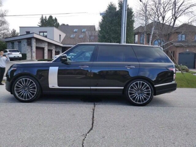 19款路虎揽胜 (配置|询价)行政5.0创世 加长行驶在路上很容易令人一眼辨识出它们一脉相承的高贵血统。格栅采用镂空式设计,粗壮的横条式更显豪华,侧面线条硬朗有力,没有任何的弯曲和过渡,不过就整体而言没有生硬感。前脸细节调整明显,雾灯上方加上蜂窝式进气口设计,变得相当有活力。