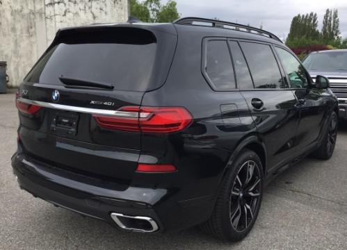 2019款宝马X7美规 黑色非金属漆,普通黑色皮内饰,22寸轮毂,城市行驶规范预警,外观设计包(铝制色旅行架导轨,铝制色车窗饰条,车内氛围灯)标配(盲点辅助,道路保持,停车距离控制,运动皮质方向盘,运动轮胎,车库开门系统,舒适进入,旅行和舒适后排电子系统,无烟煤棕内饰板,行李箱管理系统,运动座椅,腰托,自动大灯,主动保护模式,驾驶辅助系统,LED雾灯,苹果CARPLAY,BMW连接包,手机无线充电,WIFI热点,实时驾驶导航系统,sirius xm公司卫星广播调谐器1年使用,CD播放器,防炫目后视镜
