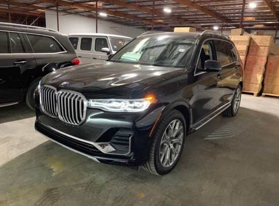 19款宝马X7 (配置|询价) 黑/黑 单选:金属漆,Vernasca真皮座椅,冬季包(前后座椅加热,座椅扶手,5区自动空调),豪华座椅包(前通风、按摩座椅,多轮廓座椅),停车辅助包(停辅系统升级,带3D的环绕视图),豪华包(摇启,电吸门,后电动遮阳帘,抬头显示,手势控制),后拖车装置预留,脚踏