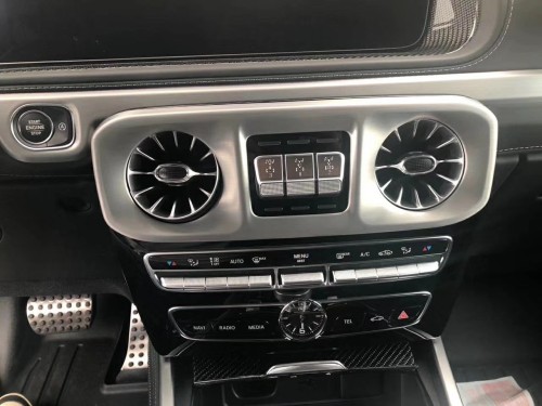 2019款奔驰G63与前代车型相比,标配新式仪表盘和最先进的COMAND APS NTG 4.5驾驶室管理和数据系统。还配备了带彩色TFT显示屏的AMG表盘、AMG主菜单和单独的挡位显示器以及采用白色照明的AMG门槛。全新进口奔驰G63AMG采用了全黑的内饰配色,间中点缀的银色镀铬装饰显得相当精致。奔驰G63AMG精选皮革搭配多疤胡桃木木饰的装饰风格彰显了顶级经典越野车的风采。奔驰G63AMG进口SUV豪车内饰设计更具时代感也更加豪华。新款G63AMG独立的液晶显示屏如同奔驰A等新车型一样,被立在中控台上方,这样更加方便阅读信息。大多数奔驰的电子系统都出现在这个全新的豪华内厢里,包括COMAND和HD卫星导航系统