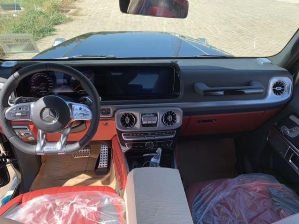 19款奔驰G63的内饰可以说极具有诱惑力。方向盘采用了AMG平底式全新造型的运动方向盘搭配银色碳纤维设计彰显时尚。车内的高档皮革内饰以及标有V12钻石图案设计的座椅、车门面板和脚垫,无不彰显着车主的尊贵身份!