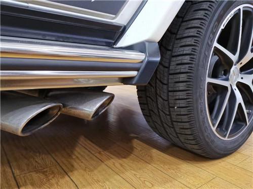 奔驰G63 (配置|询价)复式氙气大灯下方还增添了时下流行的LED日间行车灯设计,这也为奔驰G63 AMG前脸增添了不少亮点。新设计的前保险杠,三块大面积散热口预示着强悍的动力,进气格栅改用双横条配三叉星,四支大口径排气管从车身两侧后轮前部的侧裙处探出,最后再配以AMG传统风格的大尺寸五幅合金轮毂。