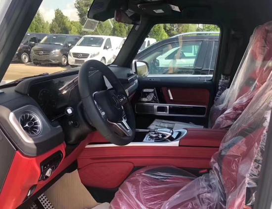 2019款奔驰G550车内采用深色调与桃木装饰,黑色真皮运动座椅非常舒适,方向盘以高档真皮包裹装饰,触感极其细腻。配有桃木装饰的操控台,稳重大气,同时提高了整体的质感。各种功能按钮应有尽有,丝毫不次于豪华轿车的功能;后排空间非常宽敞,且后排的座椅可以折叠,以得到更宽敞的储物空间。