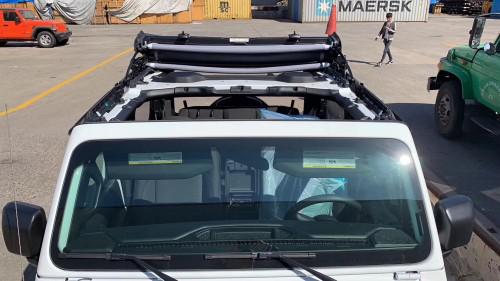 新一代牧马人 (配置|询价)前脸配备双圆形前大灯设计,格栅还采用了折痕设计,而且前挡风玻璃还可以拆卸,只需要打开4个卡扣就好,还在前轮拱上面还集成LED日间行车灯,下方雾灯位置不变。