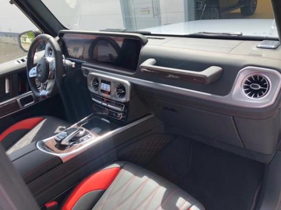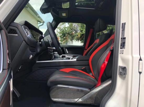 19款奔驰G63全新的直瀑式进气格栅可以说是家族最新的设计风格,也是在新车外观造型上与奔驰系列产品差异化最明显的地方。此外,G63最大的轮圈尺寸,进一步提升了它外观造型的彪悍程度。展车不仅采用了全新的车身涂装,还搭配了红色的轮圈装饰,更加个性。