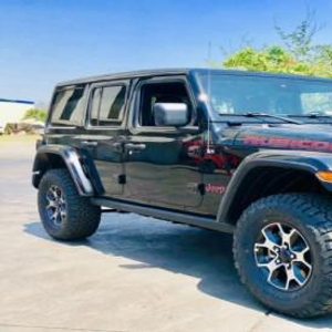 19款加版牧马人四门 Rubicon标配:四驱,一键启动,红色拖钩(前2+后1),220安培电流,115V外接电源,电动加热外后视镜,全尺寸备胎,17寸越野铝轮 285胎 高位轮眉,深色玻璃,黑色软顶,真皮多功能方向盘,7英寸触摸屏,7英寸仪表,8扬声器,4个USB接口,前后脚垫,倒影,电动车窗,电动门锁,自动大灯,后排座椅60/40可折叠,自动空调,4.10后桥比,Rock-Trac双速分动箱Rubicon贴,选配:2.0发动机8速自动挡寒冷包--(前座加热,方向盘加热,遥控启动)安全包---(盲点监测,后电眼)灯光包---(天使眼日间行车灯,LED 雾灯,LED大灯,LED 尾灯)导航音响包-(8.4英寸触摸屏,ALPINE高级音响,主动噪音控制系统,自动防炫目后视镜,GPS导航,高保真收音机)车身同色硬顶车身同色挡泥板升级无钥匙进入真皮座椅。