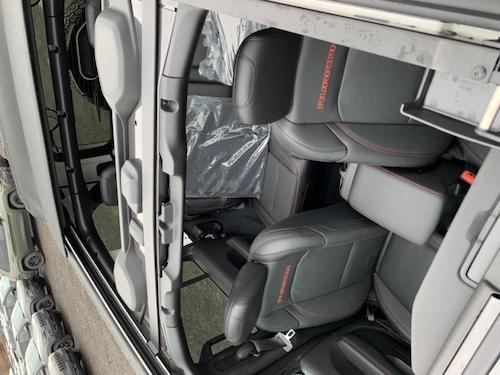 标配: 四驱,一键启动,红色拖钩(前2+后1),220安培电流,115V外接电源,电动加热外后视镜, 全尺寸备胎,17寸越野铝轮 285胎 高位轮眉,深色玻璃,黑色软顶,真皮多功能方向盘,7 英寸触摸屏,7英寸仪表,8扬声器,4个USB接口,前后脚垫,倒影,电动车窗,电动门 锁,自动大灯,后排座椅60/40可折叠,自动空调,4.10后桥比,Rock-Trac双速分动箱Rubicon 贴, 选配: 2.0发动机8速自动挡