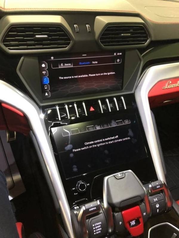 对驾驶者来说,座舱的调控皆触手可及。受到LM002和当代兰博基尼超级跑车启发,座舱内仪表盘采用了纤长的Y字型设计,如一对银色翅膀,衔接中控台,面向驾驶者舒展开来。兰博基尼著名的六边形元素在座舱内随处可见,通风口、门把手,甚至杯架和安全气囊套件中都蕴含着这一经典设计元素。多功能的三辐方向盘内含减震器,在各种驾驶条件下增强舒适性。多功能开关直观分布于方向盘上,方便控制兰博基尼娱乐信息系统(LIS),包括车辆设置、多媒体、电话和导航。兰博基尼Tamburo驾驶动态选择器位于中控台,可对全车的动态系统进行控制,根据驾驶者偏好和路面状况切换驾驶动态:STRADA(道路)、SPORT(运动)和CORSA(赛道)模式,以及新增设的NEVE(雪地)模式。同时,可选装两种越野模式:TERRA(越野)和SABBIA(沙地)。