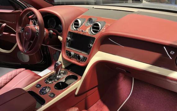 接下来是内饰方面,我们知道宾利的车子在内饰上一直都是非常出色的。而这款的用料都极尽奢华,彰显车主身份。这款添越PHEV上还运用了大面品牌积包裹的高档酒红色牛皮。在仪表盘和空调出风口的设计上面,都是采用了宾利传统的复古式镀铬圆边。