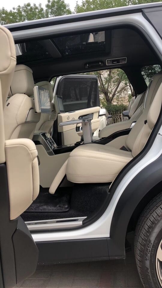 19款路虎揽胜创世加长版 5.0全车真皮包裹,批示官式的牛津打孔真皮座椅,包含仪表台,放眼SUV界,能和路虎内饰一 拼的还真没有几个。精致、优雅、奢华的最终触感与为乘驾职员营建的顶级体验完善连系。