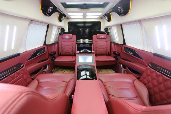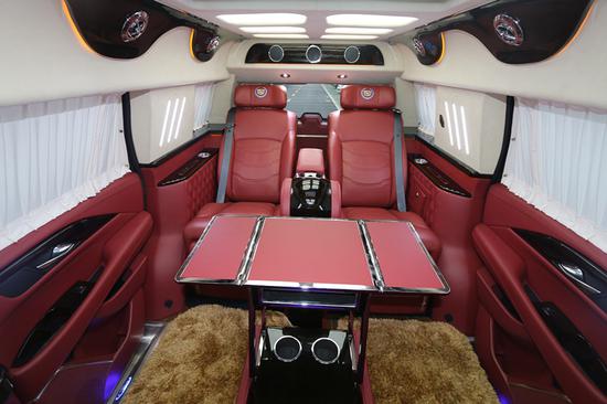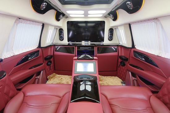 凯迪拉克总统一号整车内部选用4+2布局,驾驶室后选用电视升降隔屏,使得后舱成为一个独立私密的空间并配备最前沿的娱乐自媒体设备,办公和娱乐两不误。前排为电动折叠座椅,座椅收起跟中间多功能实木吧台融为一体,形成更大吧台。目前上海美上汽车总统一号报价198万,价格是前所未有的优惠,喜欢就来咨询