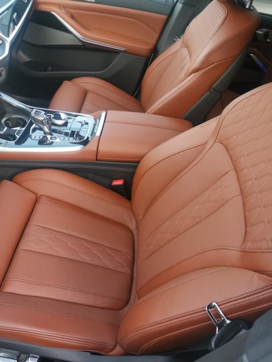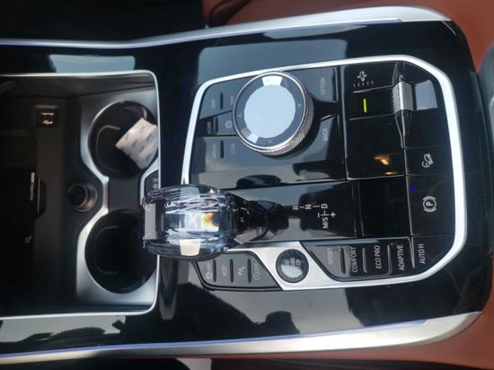 19款宝马X7内饰部分,宝马X7采用最新家族式设计语言,使用大量真皮、木纹饰板进行包裹。配备12.3英寸带有注意力检测的全液晶仪表和12.3英寸悬浮式触控显示屏。空调出风口与温度显示屏、实体功能按键结合在同一区域,并使用银色装饰条进行点缀。下方盖板下方为带有加热、制冷功能的杯架,全新的水晶电子挡杆造型十分精致,进一步提升了车内的豪华氛围。